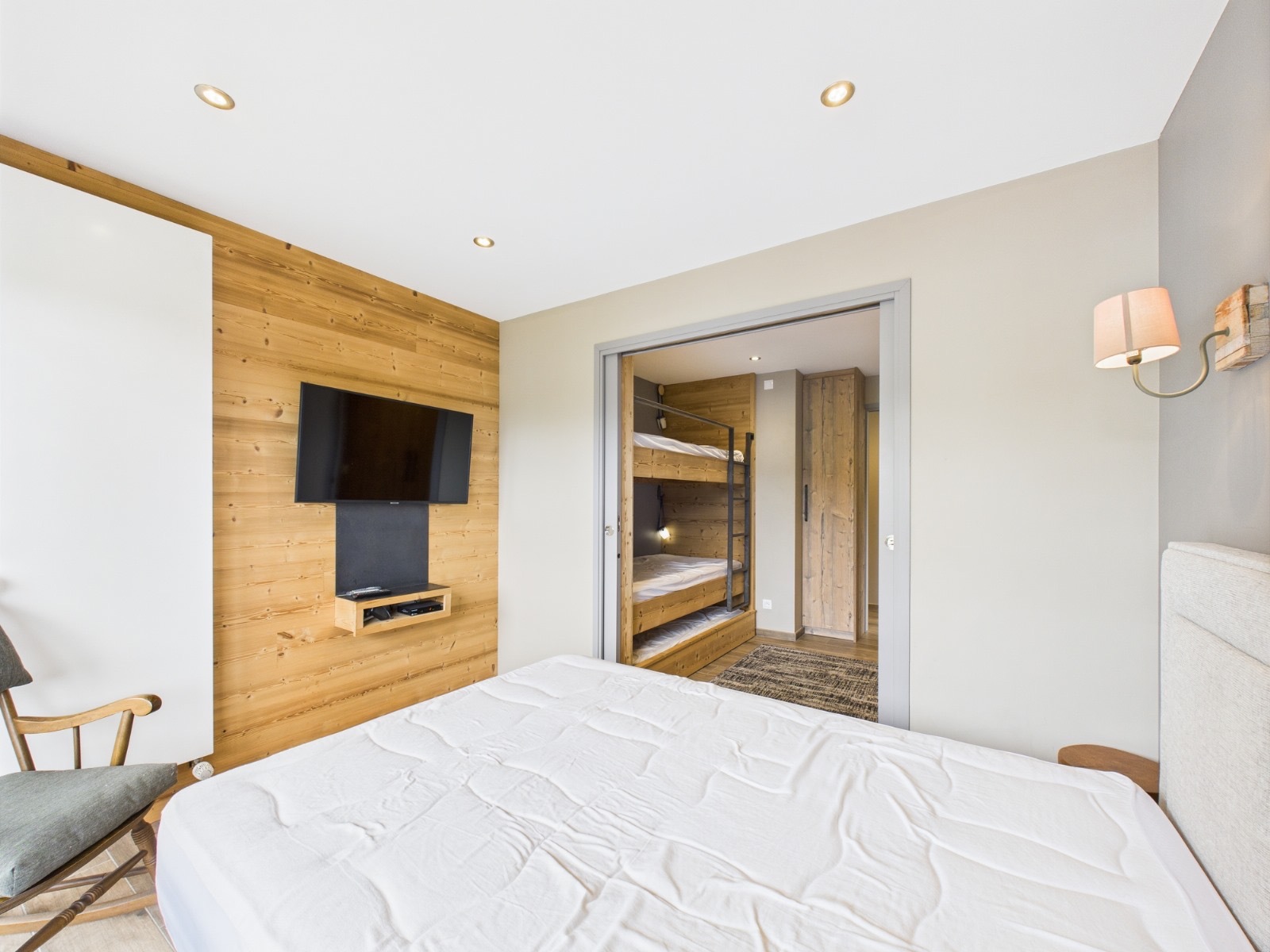 - A first bedroom with 2 bunk beds (90x190cm), access to the 2nd bedroom by sliding door