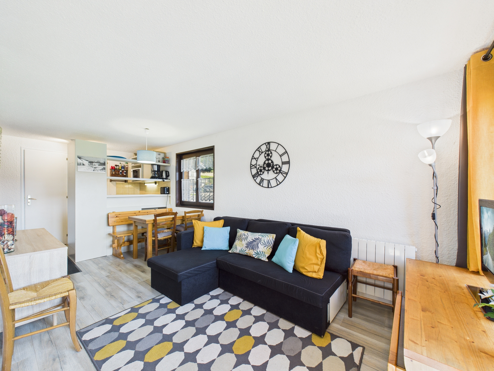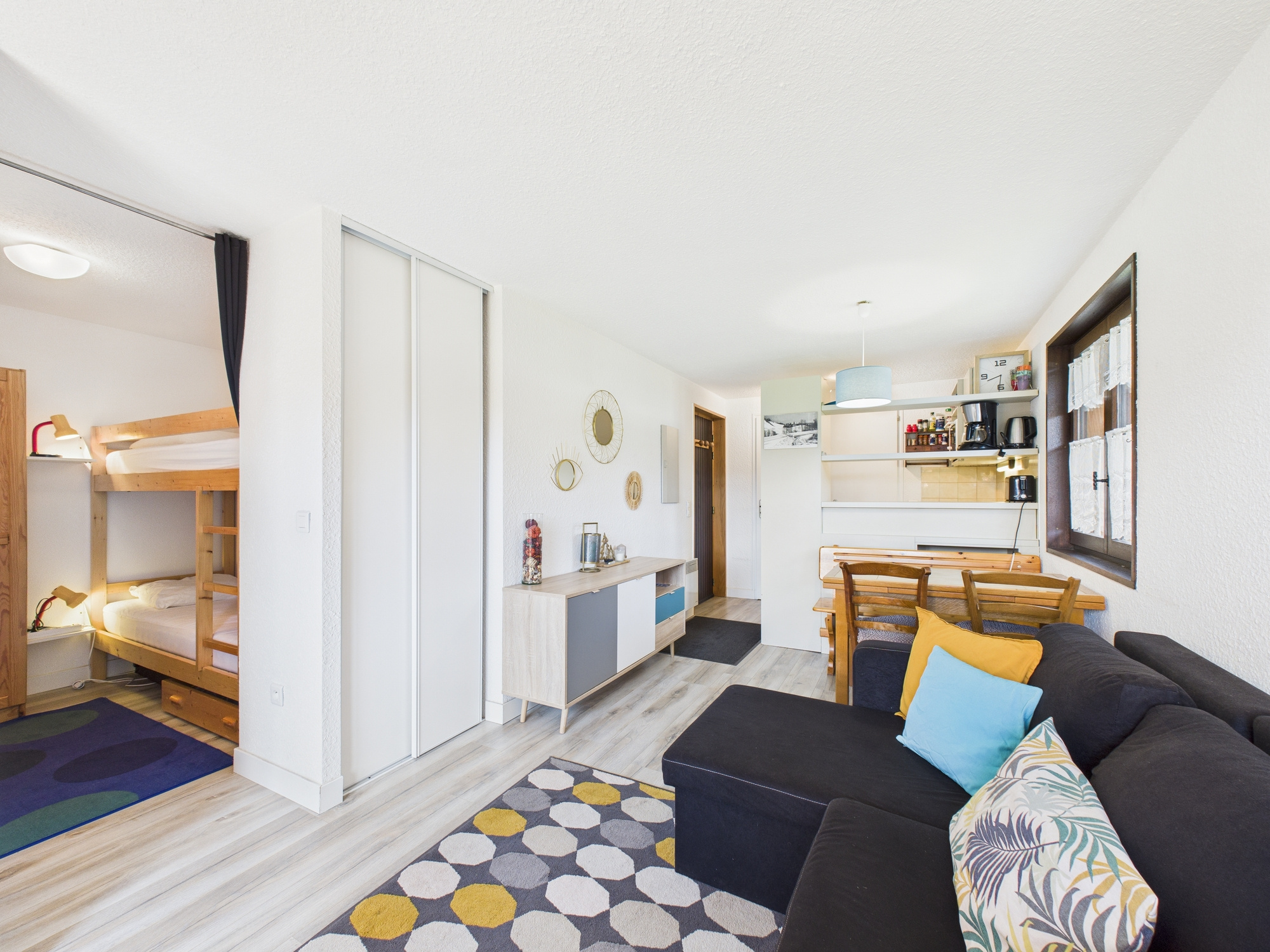 Au centre du village, tout en bénéficiant d'un environnement calme, cet appartement possède de nombreux atouts! Intelligemment aménagé, cet appartement bénéficie d'une belle pièce de vie avec balcon plein Sud, une chambre, un cabine (lits superposés), salle de bain et wc séparé. L'appartement possède une belle vue dégagée, et l'ensemble du terrain faisant face à l'appartement appartient à la copropriété (donc pas de risque de construction et de perdre cette vue). Ce terrain est idéal pour regarder parents et enfants jouer dans la neige durant l'hiver, en toute sécurité!