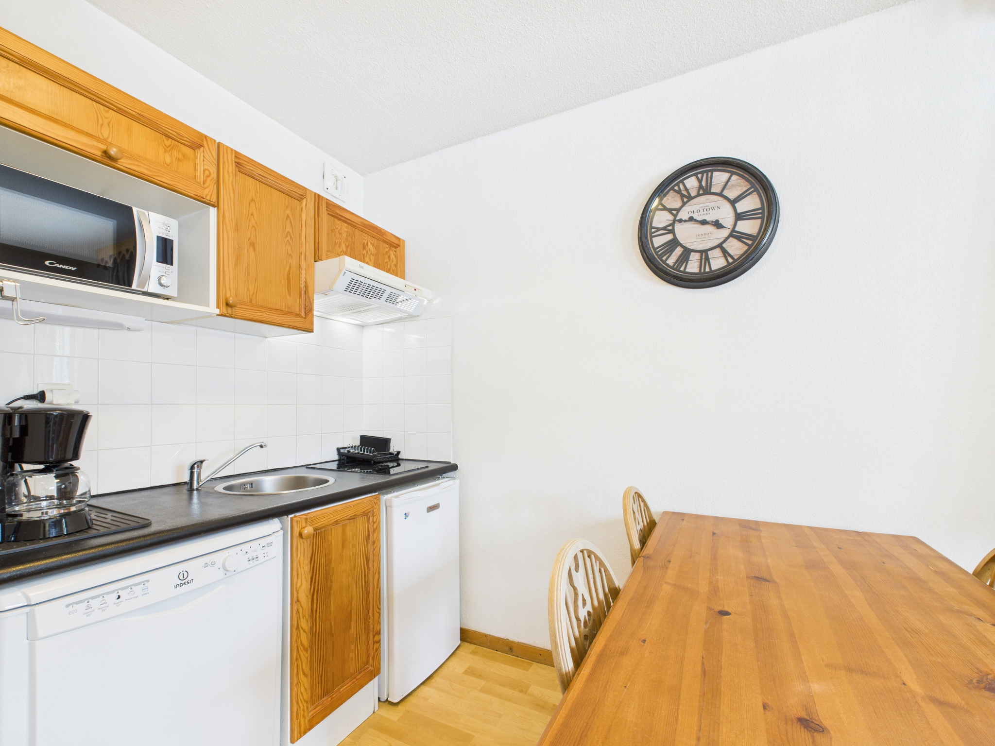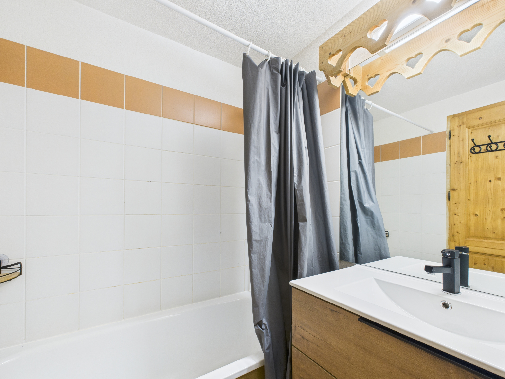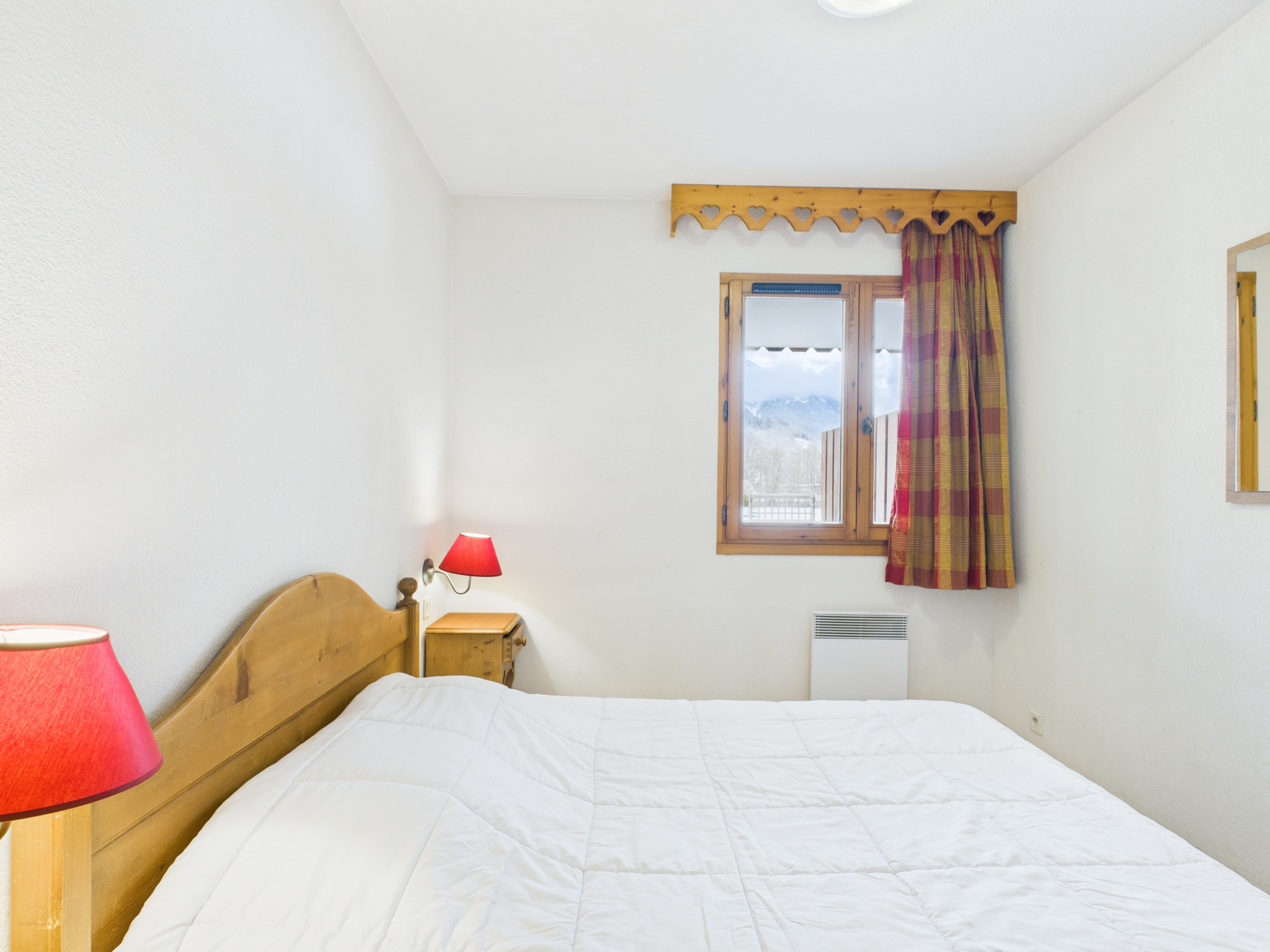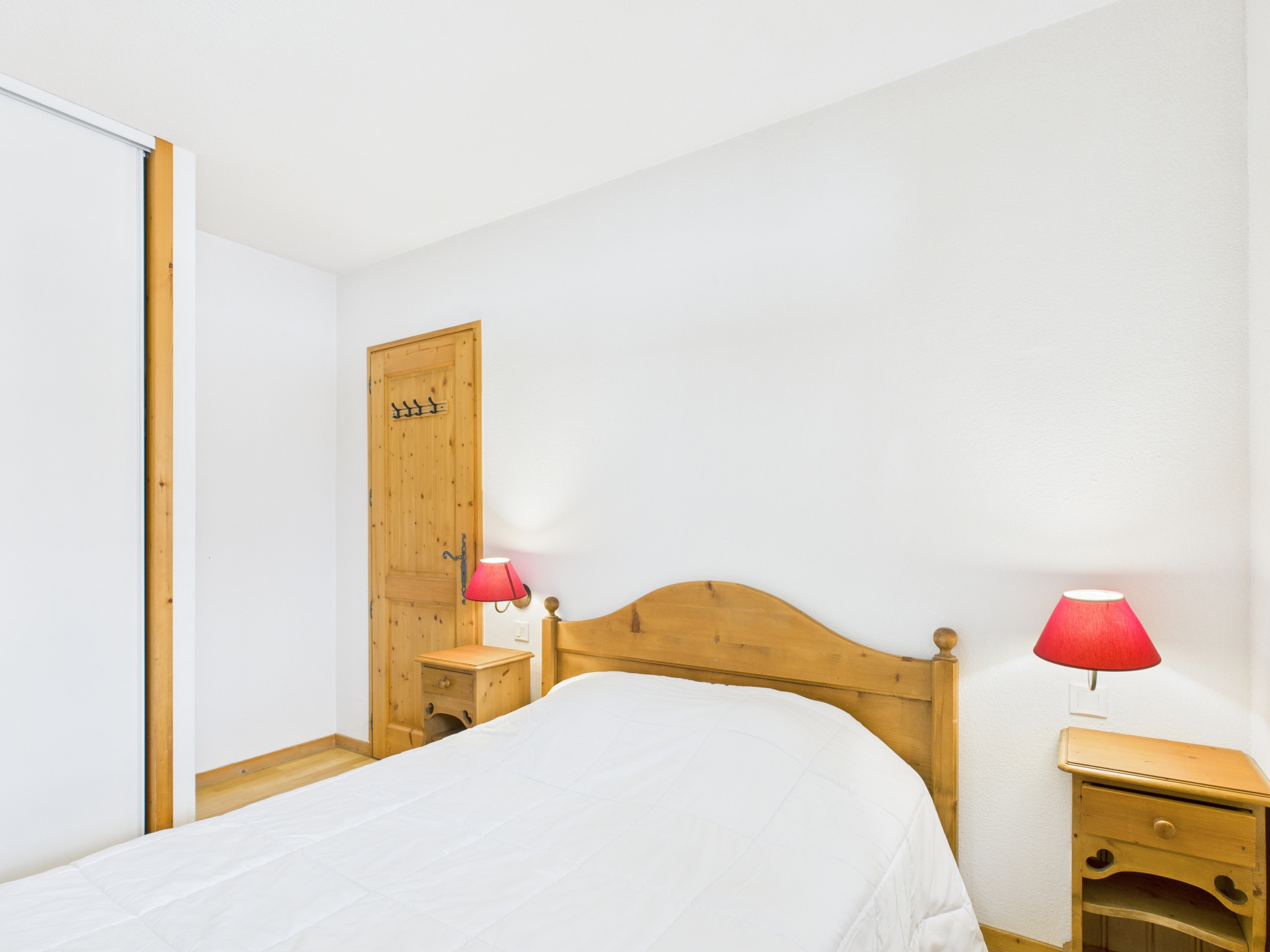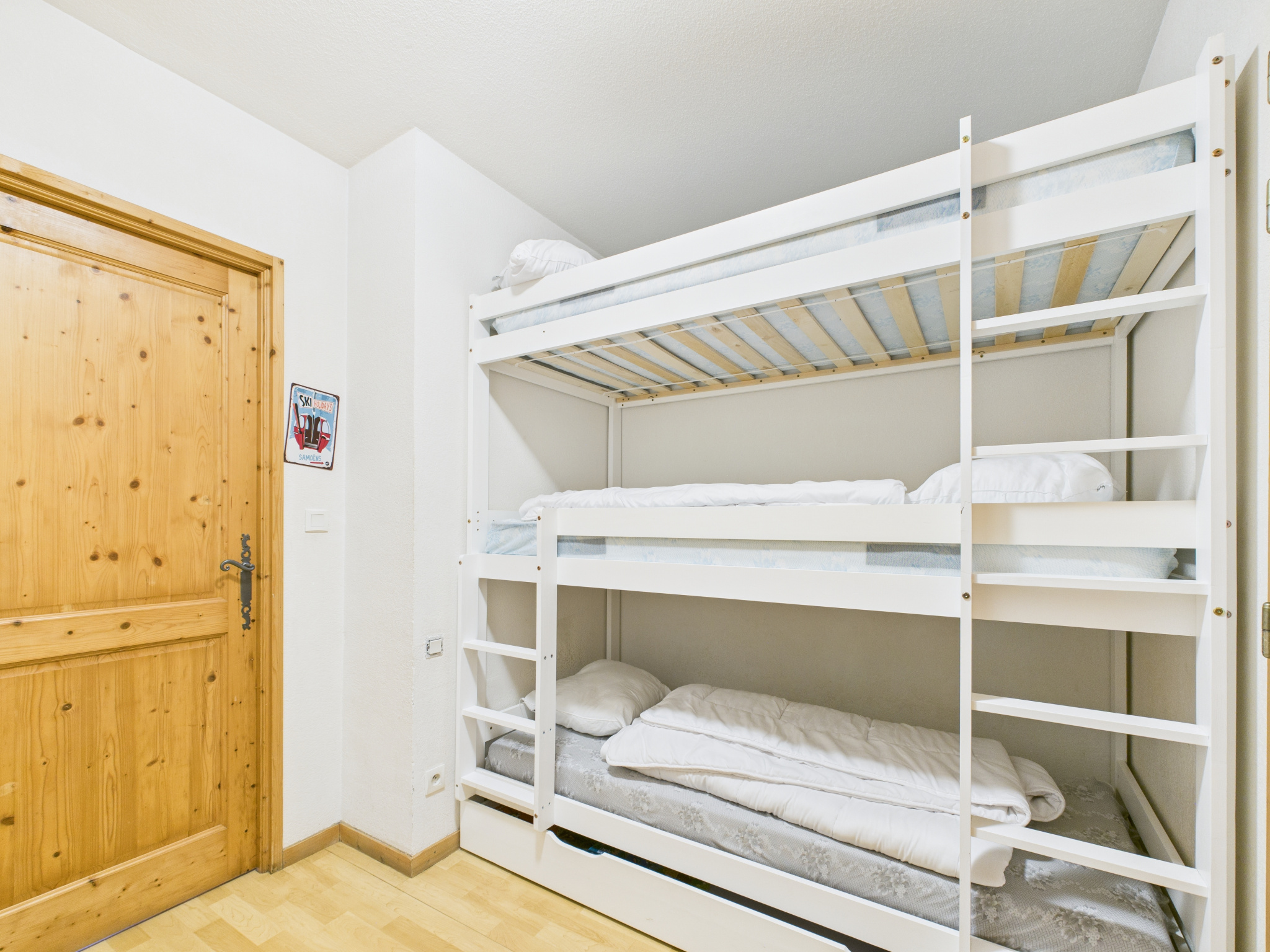 L’appartement se compose d’un séjour lumineux avec espace salon/salle à manger ouvrant sur le balcon, d’une cuisine équipée ouverte sur la pièce de vie, d’une chambre double, d’un coin montagne à l’entrée doté de trois lits superposés (séparé du séjour par une porte pour plus d’intimité), ainsi que d’une salle de bain avec WC.