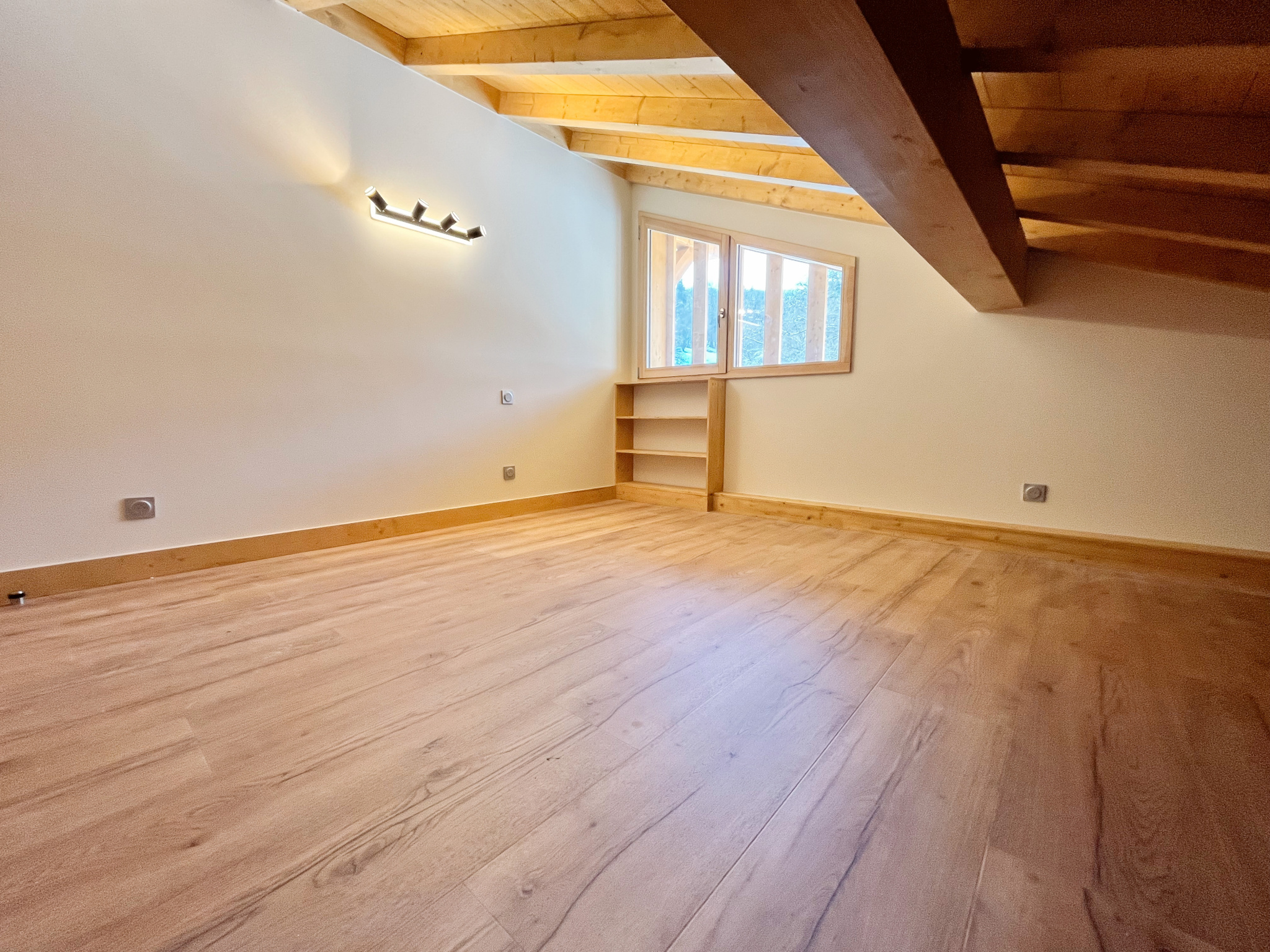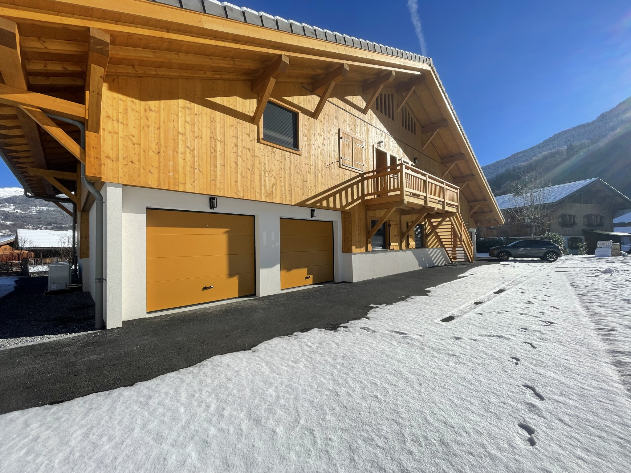 Au premier étage d'un chalet chaleureux de seulement 3 appartements, construit par des artisans locaux dans un environnement reposant et arboré, vous y trouverez notre duplex chaleureux et spacieux composé ainsi : entrée avec rangements, vaste séjour lumineux de plus de 40m2 sous charpente apparente, avec cuisine ouverte, deux chambres doubles en suite avec placards intégrés, deux WC séparés; en mezzanine (pouvant être ouverte sur séjour) une chambre de plus de 30m2 vous attend pour un espace intime et cocooning ; au niveau -1 de plain-pied : une quatrième chambre en suite avec WC. Un garage fermé indépendant vous permettra de profiter d'un espace de stockage supplémentaire et de garder votre voiture au chaud pendant l'hiver.