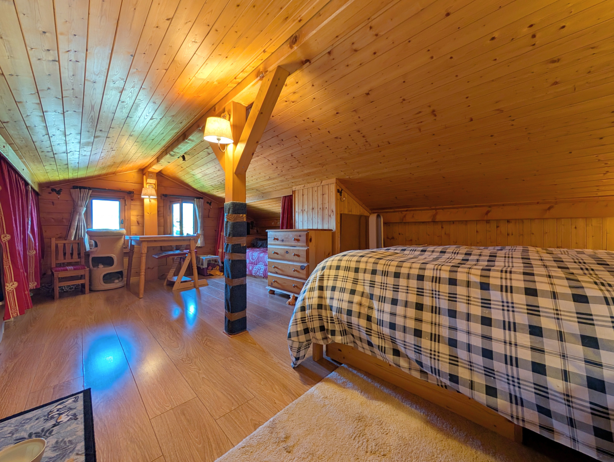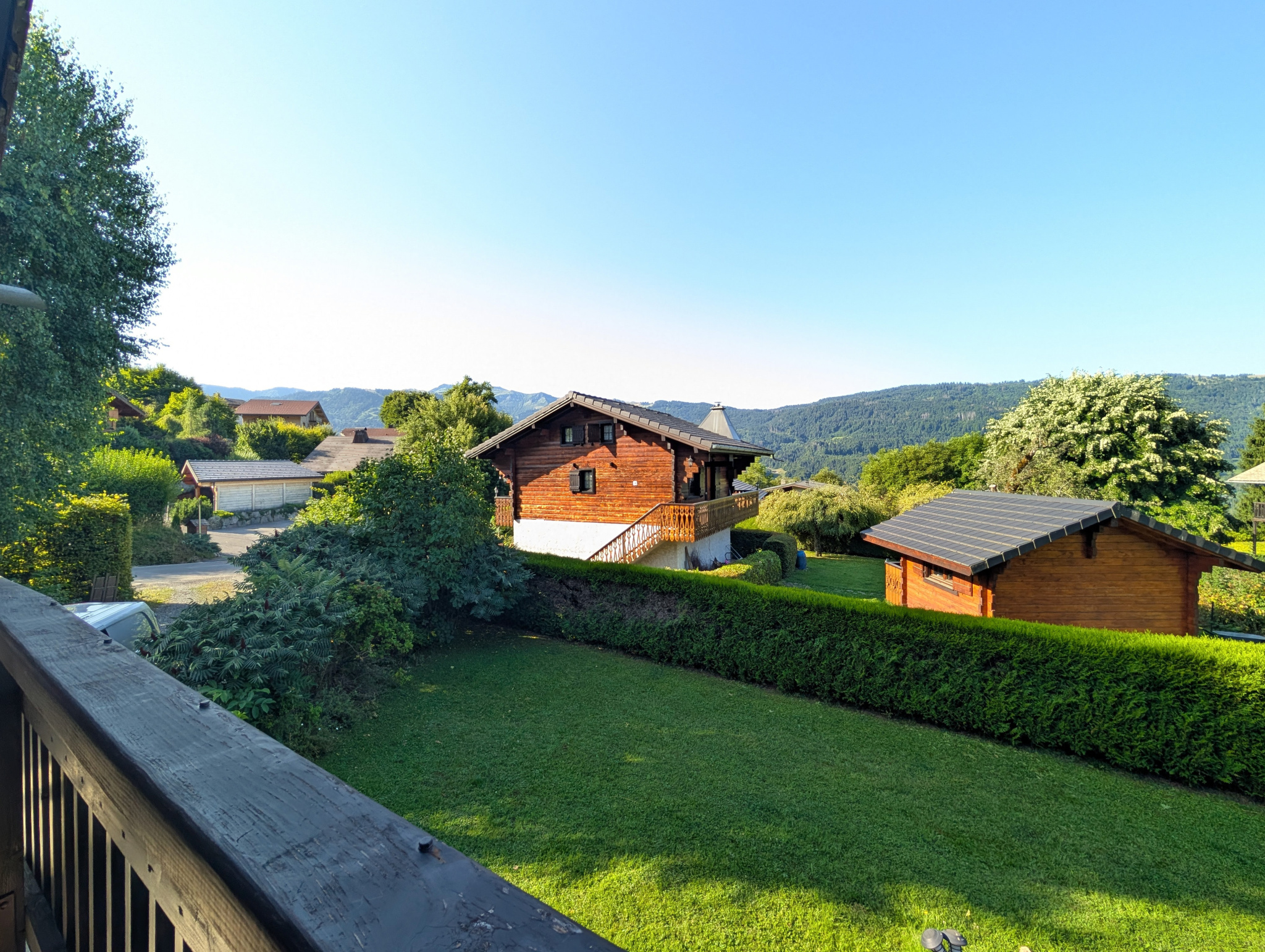 Situé sur les hauteurs du village, à quelques minutes des commodités et de la base de loisirs de Morillon, il vous offre sur 3 niveaux : salon séjour avec poële à bois où des moments chaleureux et reposants vous attendent, cuisine semi-fermée, une chambre double, salle de douche avec WC / vaste mezzanine lumineuse pouvant faire office de couchages / de plain-pied : bureau ou chambre à votre convenance, buanderie, garage fermé. Gräce à son vaste jardin arboré de 772m2 qui entoure le chalet des moments ressourçants face aux sommets du Grand-Massif vous sont assurés !