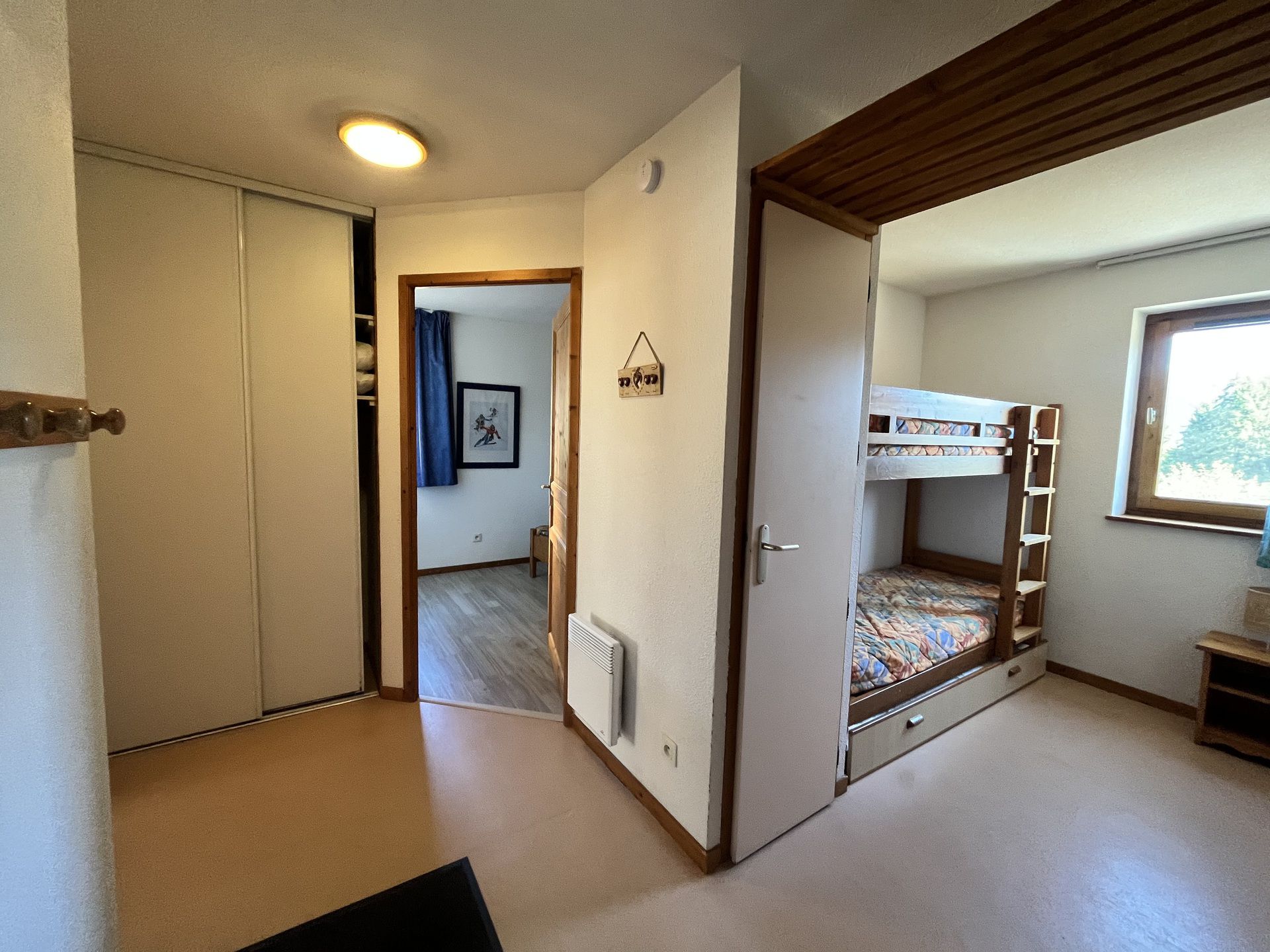 - Un coin montagne à l'entrée avec 2 lits superposés et 1 lit tiroir (3 couchages au total)
