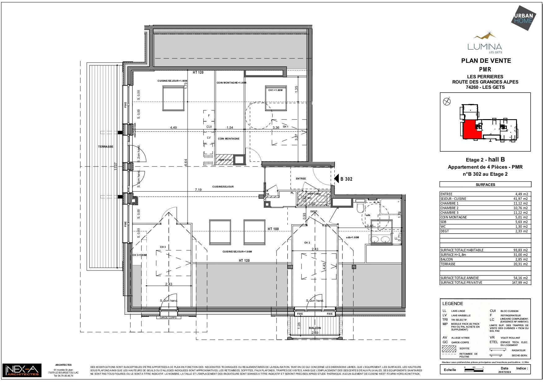 Découvrez notre nouvelle résidence « Lumina » aux Gets. Appartement B205 - 3 chambres / 101.37 m2