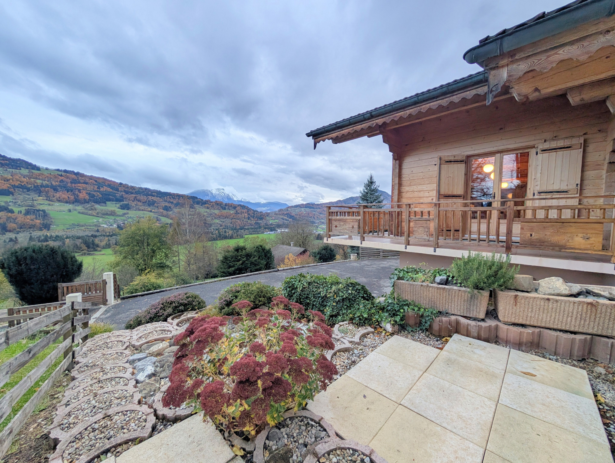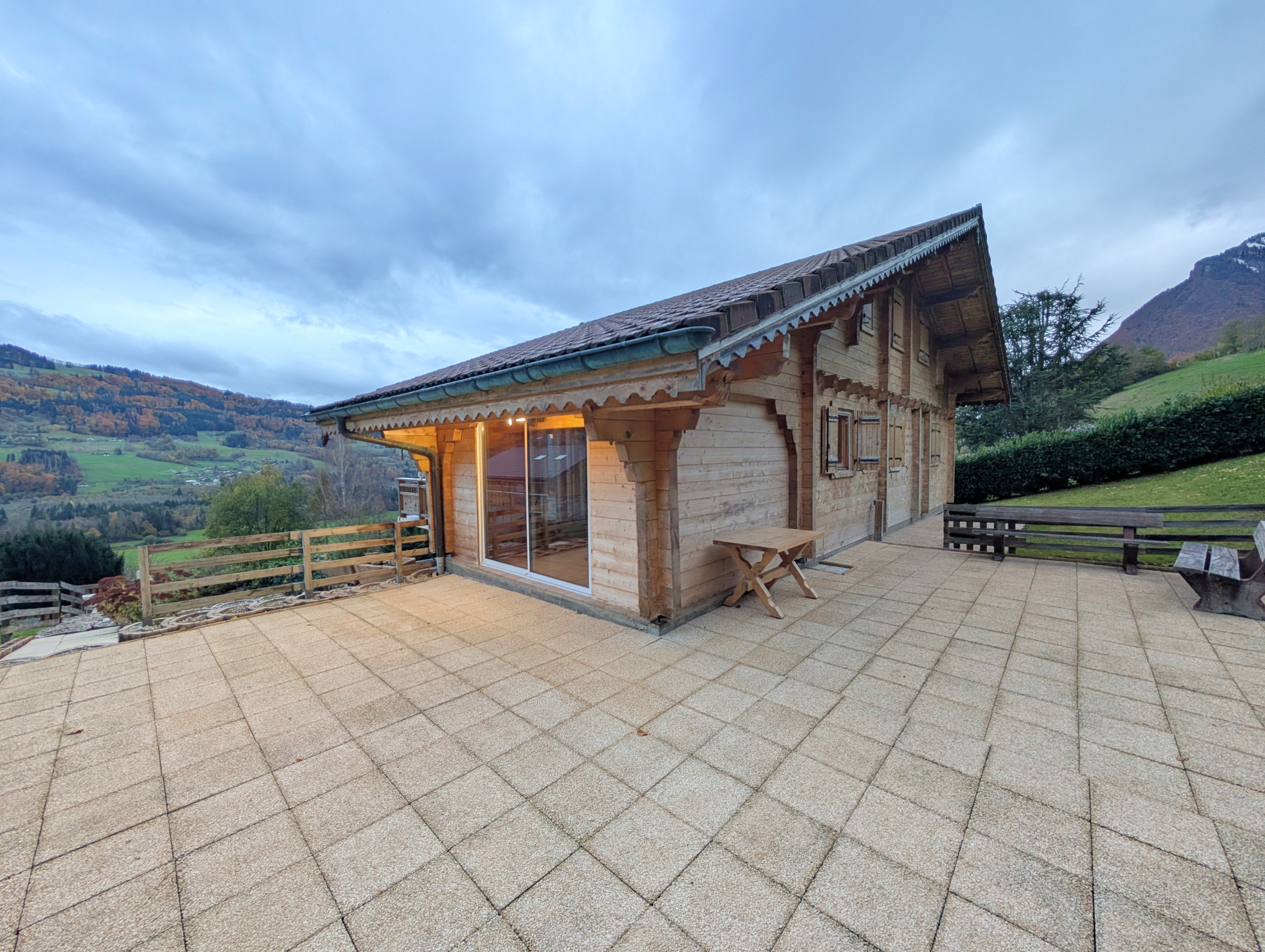 Edifié sur un terrain de plus de 1500m2 sur le coteau Sud de Taninges dans un petit hameau authentique du village, notre nouveau chalet de plus de 230m2 total vous attend. Il vous propose : au niveau principal : une vaste pièce de vie lumineuse ouverte sur les sommets environnants, cuisine ouverte équipée avec véranda donnant accès au jardin, une chambre double, salle de bain et WC séparés. Au niveau 1 : 3 chambres vous attendent dont deux avec balcon, une salle d'eau avec WC. Au niveau 0, de plain-pied, vous y trouverez une entrée avec rangements, une buanderie et un bel espace technique aménagé. Sur ce niveau, vous trouverez aussi un des grand plus du chalet : un appartement indépendant avec salon séjour, cuisine ouverte, une chambre et salle de bain avec dressing.