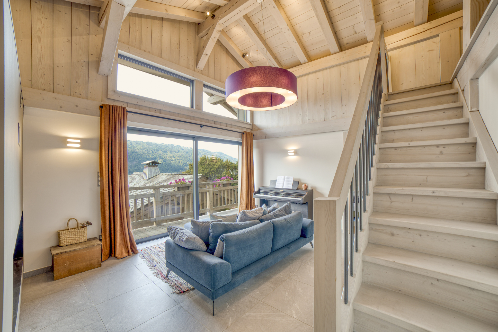 Situé sur le coteau Sud - Verchaix Haut, et construit de manière singulière, il vous offre un premier chalet spacieux comprenant un salon séjour principal lumineux avec cheminée, cuisine entièrement équipée ouverte sur séjour, une vaste terrasse exposée Sud avec une vue ouverte sur La Vallée (que vous n'avez jamais pu découvrir auparavant !), un deuxième salon avec mezzanine attenante, ouvert sur les vallées environnantes, 4 chambres, un bureau, 3 salles de bain, buanderie et cellier. De plain-pied, une vaste pièce de vie lumineuse vous attend, pouvant servir de liaison entre les deux propriétés ou d'un espace à utiliser à votre guise. Dans cet endroit singulier, laissez cours à leur imagination : salle de sport, salle TV, bar, piscine intérieure ... Toute idée est bonne à prendre ! Le second chalet lui, vous propose une entrée sur séjour avec une vue ouverte sur les sommets, cuisine toute équipée, deux chambres en suite et double terrasse.
